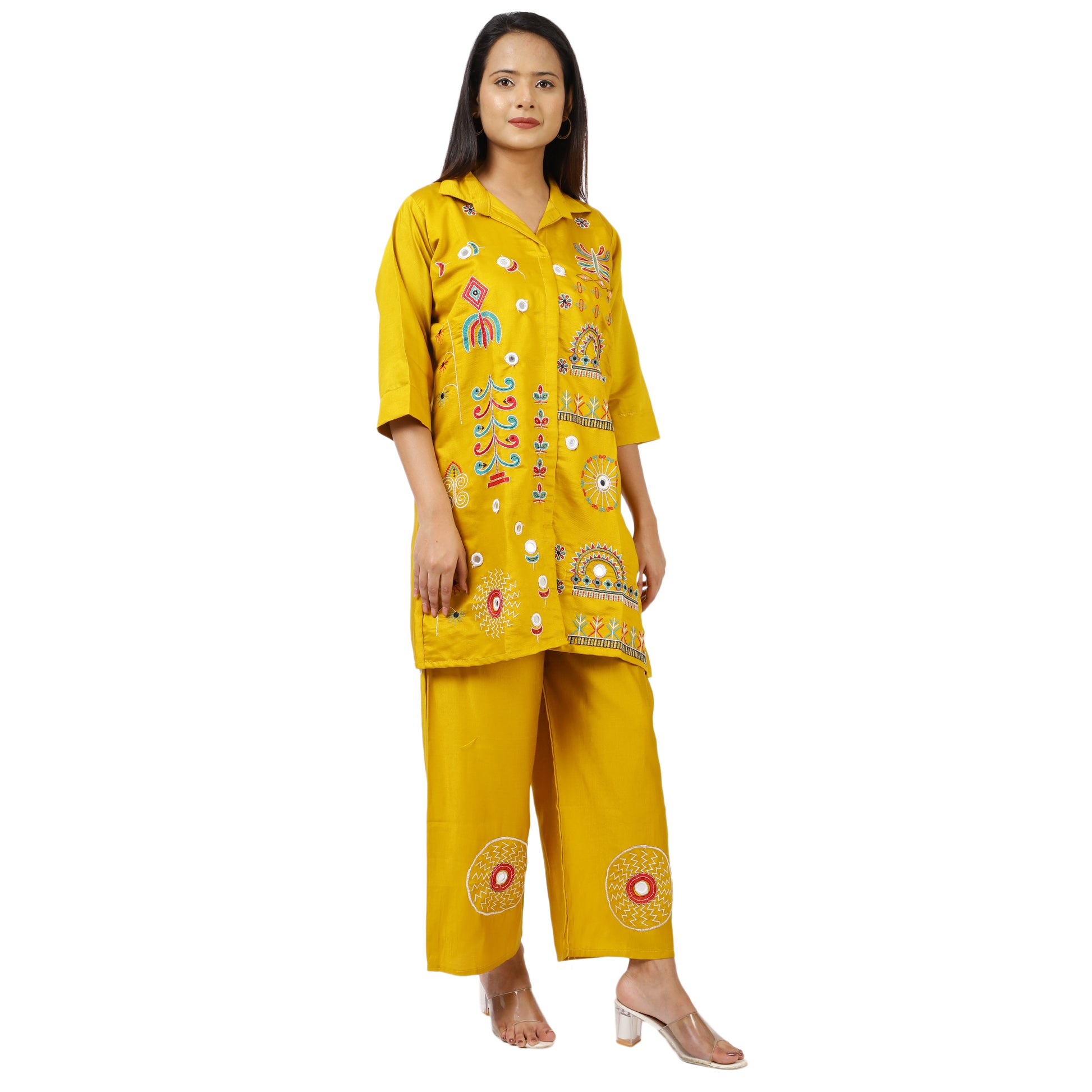 - MATERIAL & STYLE: Premium cotton kurta pant set in vibrant yellow, featuring intricate embroidered designs and traditional Indian motifs